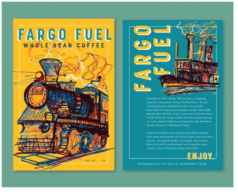 Team Abovo loves weaving art into everyday products, and Fargo Fuel is a prime example of this passion. The packaging is both colorful and meaningful, with a design that draws you in as much as the aroma of the coffee itself. We also love opportunities to have a hand in naming something! The name “Fargo Fuel” is catchy, fun and embodies the energy of the city. The product doesn’t just taste good in your cup—it looks great on the shelf too. This simple product has been embraced by local organizations who offer a warm welcome to Fargo, including the Fargo Moorhead Convention and Visitors Bureau, and local Airbnb rentals. Fuel up, folks!