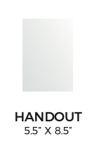 Typically 5.5″ x 8.5″ or Letter size (8.5″ x 11″), used for event information or quick reference materials.