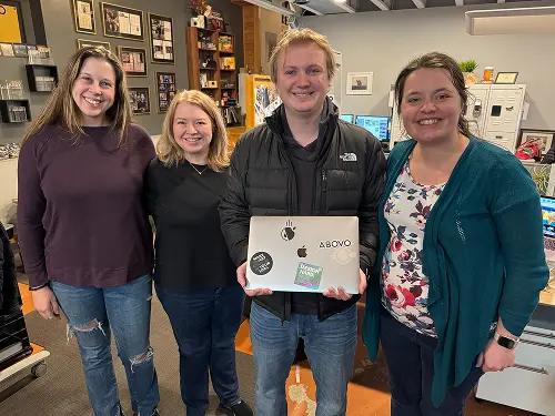 One computer, one great connection. We had the chance to meet Damian when he picked up his new-to-him machine. Passing along equipment and supporting a creative just starting out is always a win.